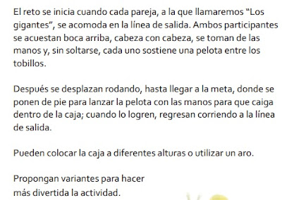 - Antes de iniciar los juegos, permitir a los alumnos integrarse por equipos y manipular el material a utilizar. Propiciar que vayan pensando algunas formas creativas y eficientes para el manejo del implemento que les permita lograr el objetivo del juego.